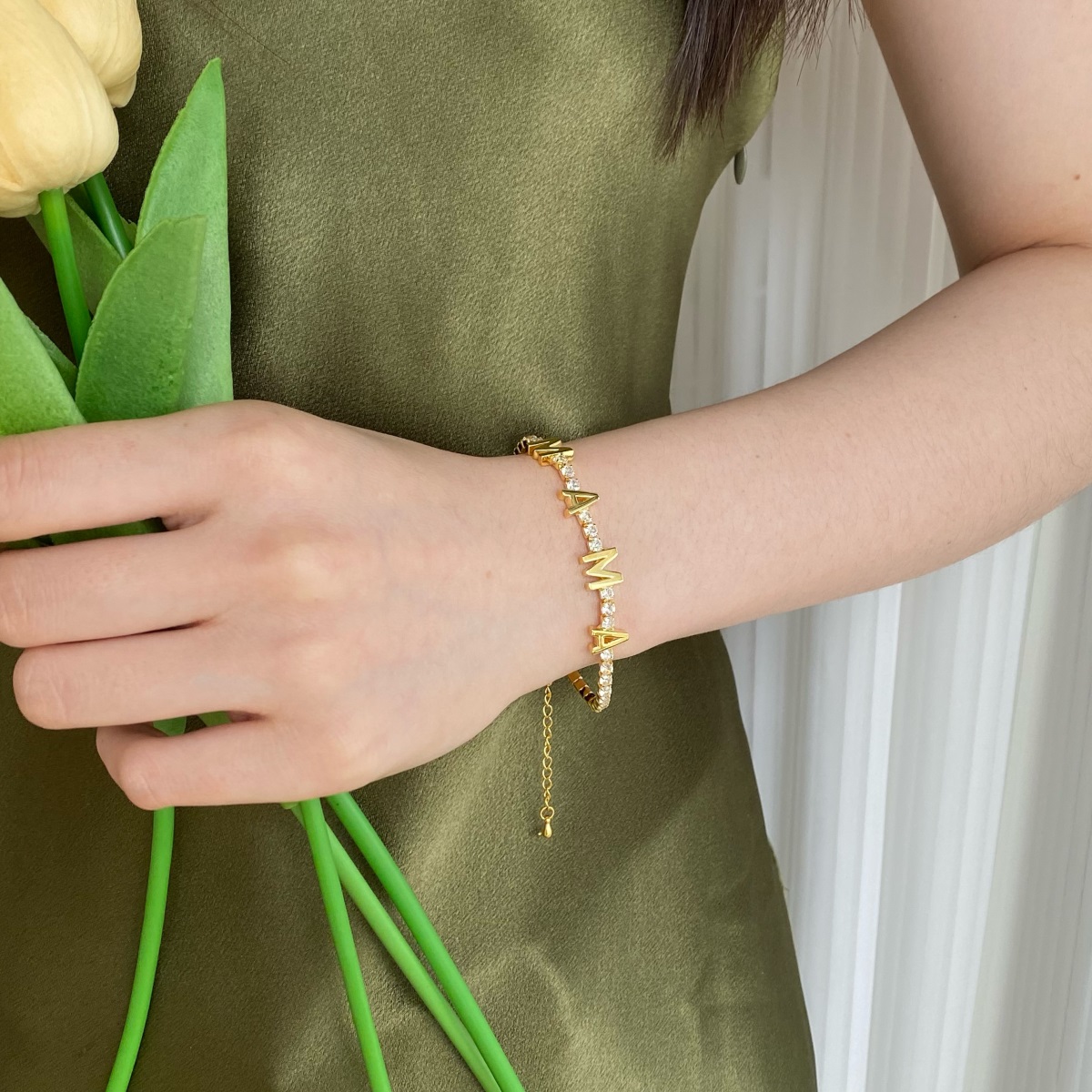Byzylyk Argjendi matriali i së cilës është i garantuar, ky byzylyk vjen me një punim unikë dhe për të simbolizuar nënat tuaj kudo qe jeni t’a mbani afër gjithmon dhe në momentin qe e shiheni doren tuaj e perkujton nënën tuaj. Një byzylyk i vecantë që vjen me dy versione të saj njera e flakruar me ngjyre ari kurse tjetra me një ngjyrë të matrialit Rhodium i cili është një matrial shumë i shtrejt.