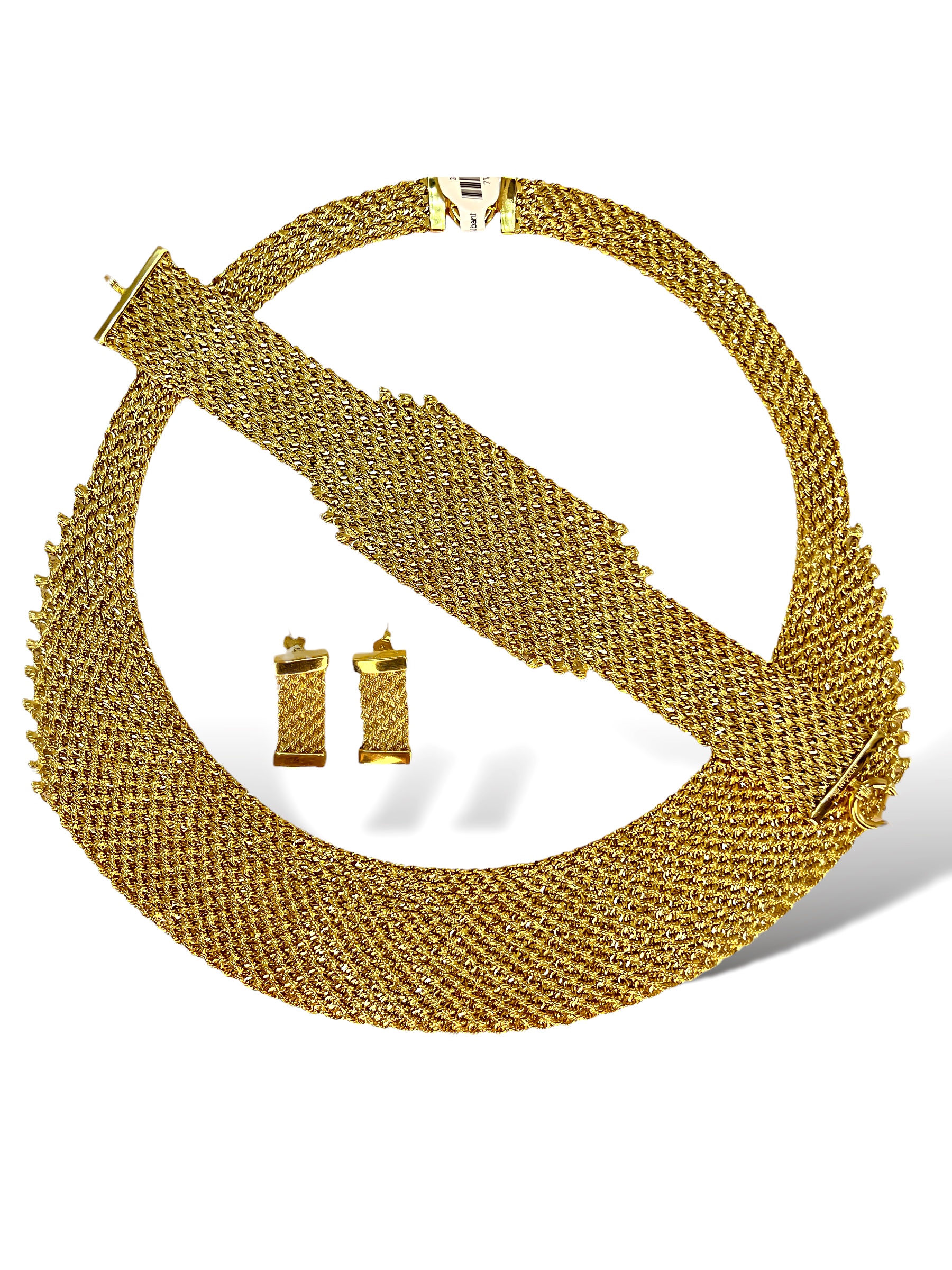 Komplet Ari matrial i së cilës është 14Karat i garantuar, ky komplet është i dizajnuar nga vendi i modes Italia. Modeli është i punuar në formen e zingjirit Rope mirpo janë të lidhura me njera tjetren duke krijuar një formë madheshtore të një kompleti unikë për ditën më të rendësishme të jetës tuaj. Një komplet shumë unikë dhe i vecant do jetë zgjedhja juaj ideale.