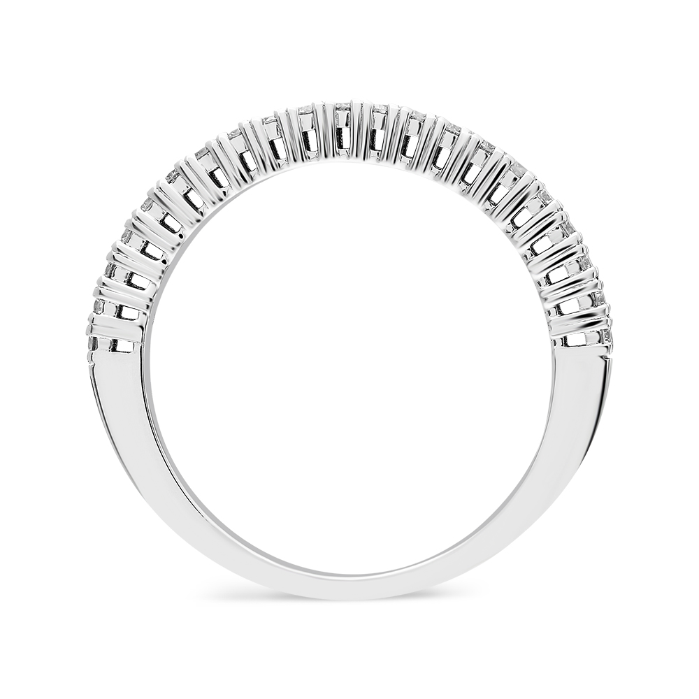Unaza diamanti ari të bardhë 14 karat e përbërë nga 15 gurë diamanti është një vepër e mrekullueshme e artizanatit të juveleve, e dizajnuar për të ndriçuar jetën tuaj me elegancë dhe shkëlqim. Ky unazë është një simbol i pashembullt i dashurisë, elegancës dhe përkujdesjes, e cila do t’ju bëjë të ndjeheni të veçantë dhe të paçmuar.Unaza është e zbërthyer me kujdes me 15 gurë diamanti, ku secili gurë është i vendosur me kujdes njeri pas tjetrit për të formuar një dizajn të rafinuar dhe të bukur. Gjithsej, gurët e kësaj unazeje kanë një peshë prej 0.37 karatë për secilin gurë, ari i bardhë 14 karatë është një zgjedhje e shkëlqyeshme për të krijuar bazën e kësaj unaze, duke e bërë atë një përbërës tërheqës dhe të veçantë i dizajnit. Kualiteti i gurëve diamanti është G SI, tregon një standard të lartë cilësie dhe sjell një ndriçim të veçantë dhe shkëlqim në secilin gurë.Kjo unazë është më shumë se një thjesht simbol i bashkësisë; ajo sjellë me vete një premtim të fuqishëm dhe të ndjeshëm të përkushtimit tuaj ndaj njëri-tjetrit.