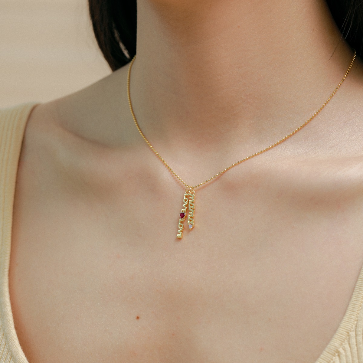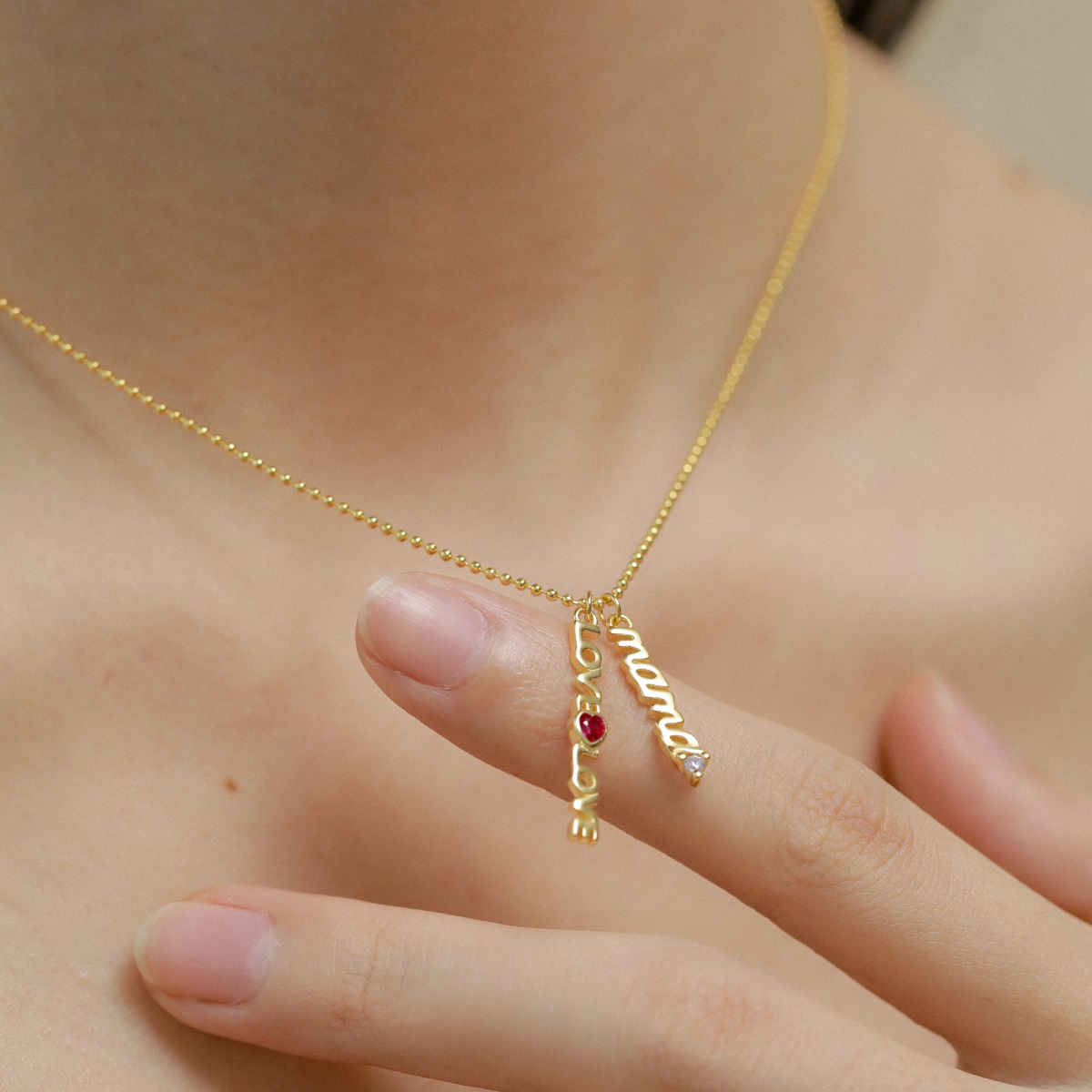 Qafore Argjendi matriali i së cilës është i garantuar, kjo varse vjen me ndryshe se të tjerat me një mbishkrim ” Love ♥ Love Mama ” e cila është e simbolizuar me një gurë në zemer dhe një gurë në perfundimin e shkrimit Mama. Kjo varse është e flakruar me ngjyre të arit.