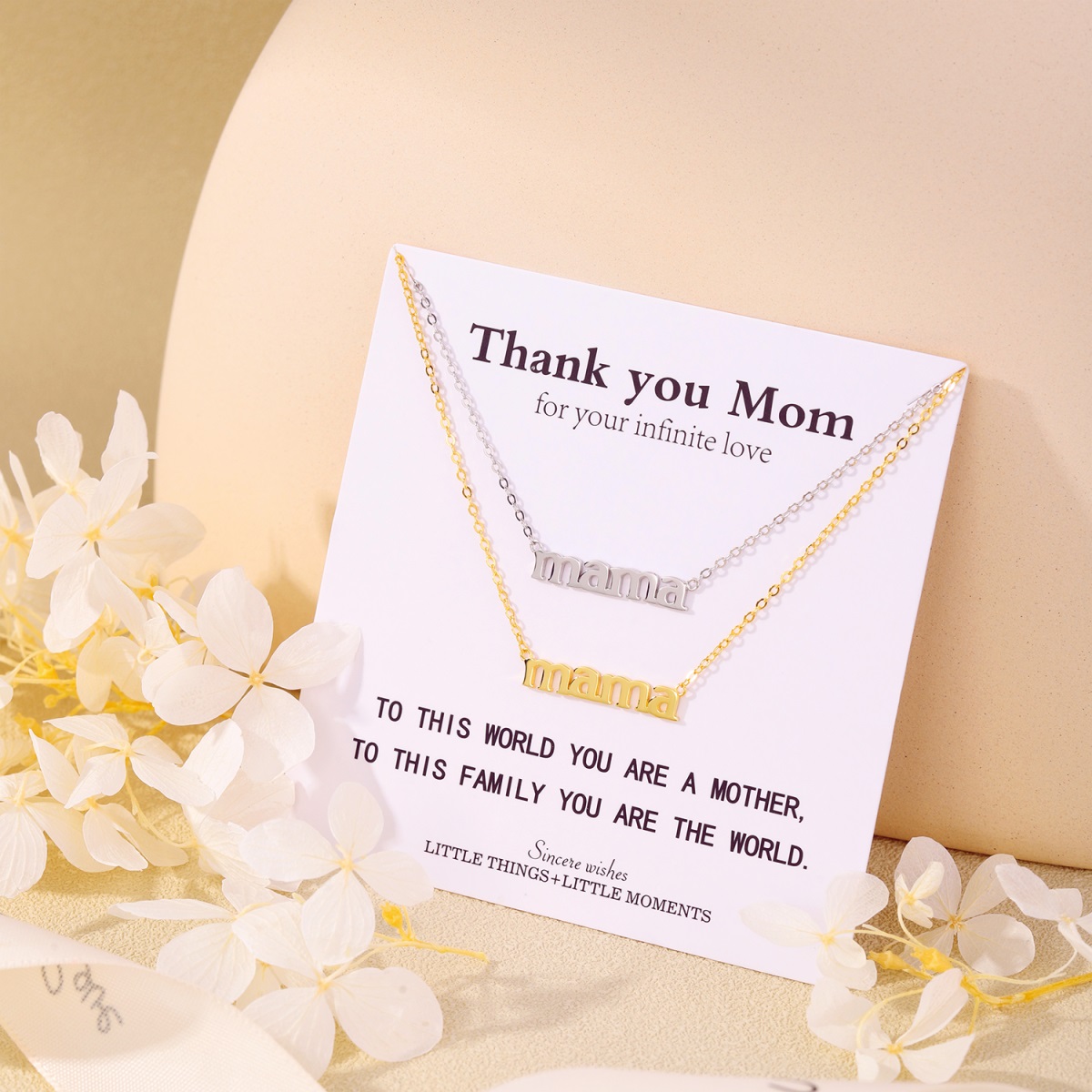 Qafore Argjendi matriali i së cilës është i garantuar, kjo varse vjen mbishkrimin “Mama” dhe dy gurët në dy krahet e mbishkrimit. Faliminderit Nënë për dashurin e pafund, në këtë botë ti je një Nënë, në familjen tonë ti je bota jonë. Kjo varse vjen me 2 versione të saj argjend e flakruar me ngjyre ari dhe argjend me ngjyre klasike të saj.