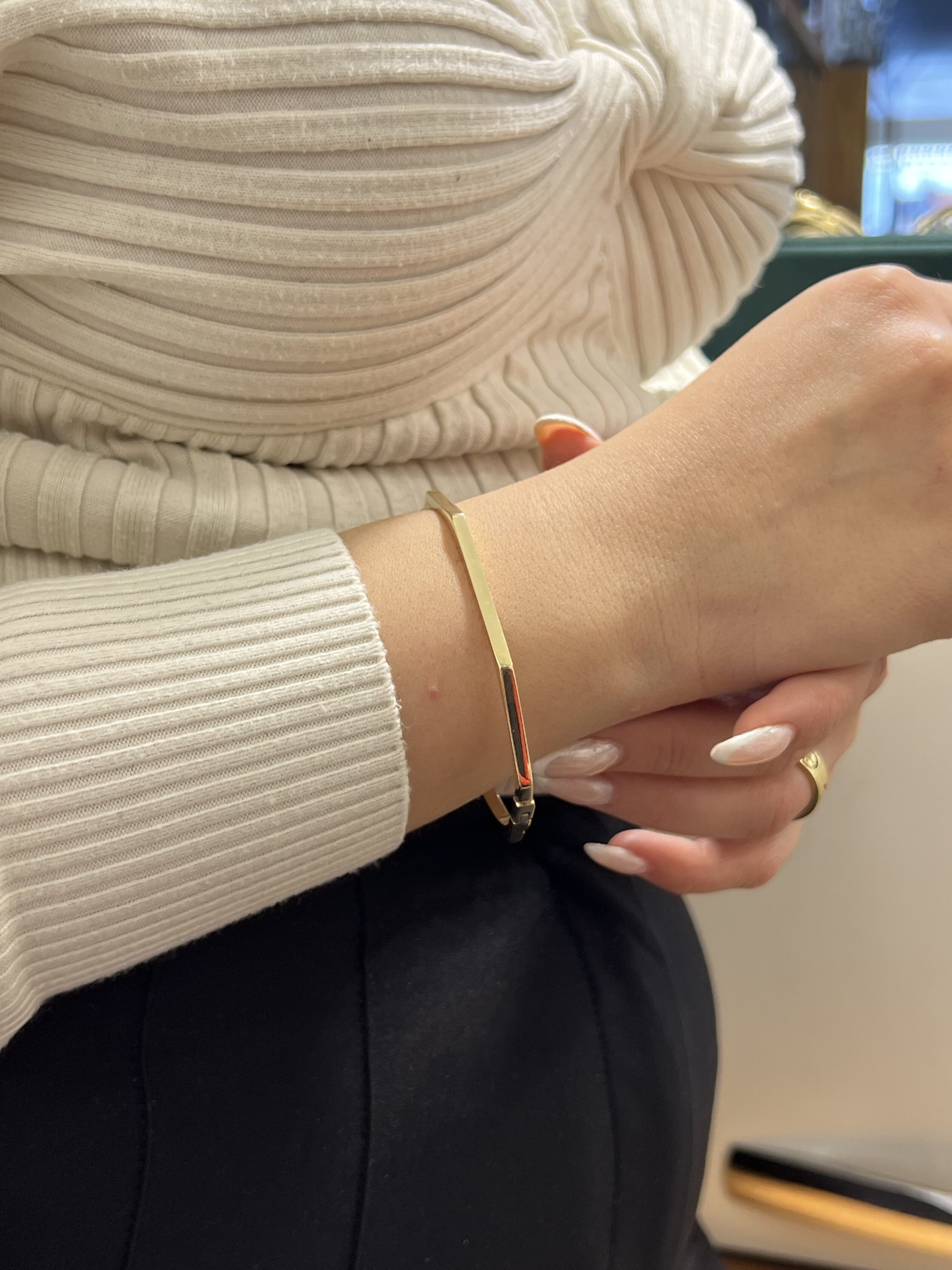 Një byzylyk ari 14 karat i modelit klasik solid pa gurë me 8 kënde është një byzylyk ari i cili ka një formë të veçantë me 8 kënde. Është bërë nga ari 14 karat, i cili është një aleacion ari i cili i është dhënë një certifikatë cilësie që vërteton karatin e tij.Ky lloj byzylyku është një zgjedhje e shpeshtë për njerëzit që kërkojnë diçka ndryshe dhe të veçantë nga byzylyku klasik solid pa gurë. Forma e tij me 8 kënde i jep një pamje më moderne dhe unike. Është një byzylyk ari i shkëlqyeshëm për të gjitha rastet, i cili mund të vishet me lehtësi në ditët e përditshme ose në ngjarjet më të rëndësishme.Ky lloj byzylyku ari 14 karat me 8 kënde është i qëndrueshëm dhe solid, duke u bërë një zgjedhje e shkëlqyeshme për punët apo aktivitetet që kërkojnë durabilitet dhe rezistencë. Me dizajnin e tij unik dhe klasik, mund të jetë një dhuratë e shkëlqyeshme për një person të dashur, ose një shtesë e mirë në koleksionin tuaj të bijuterive.