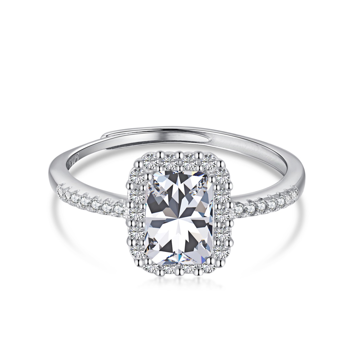 Unazë Argjendi është matriali i së cilës garantuar, unazë me një ngjyrë të bardhë dhe unike guri ka një karakteristikë të vecant Zirconi 5A në formë drejtkëndshi, krah saj ka edhe gurë të madhësisë 1mm.