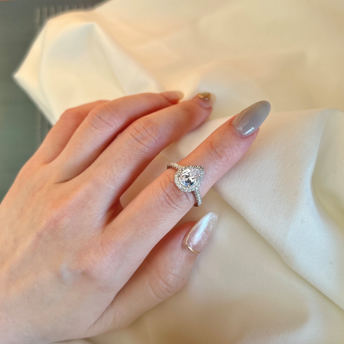 Unazë Argjendi matriali i së cilës është i garantuar, kjo unazë ka një dimension të gurit kryesor prej 9.7mm*6mm dhe guri ka një formë të rrumullakët nga posht dhe në pjesen nalt vazhdon duke u thepisur e cila është e siguruar me dhëmbëzor të argjendit. Unaza ka një guri të cilësisë Zirconi 8A e cila është nga kualiteti i gurit më të lartë dhe ka një shkelqim të diamantit të vertetë.