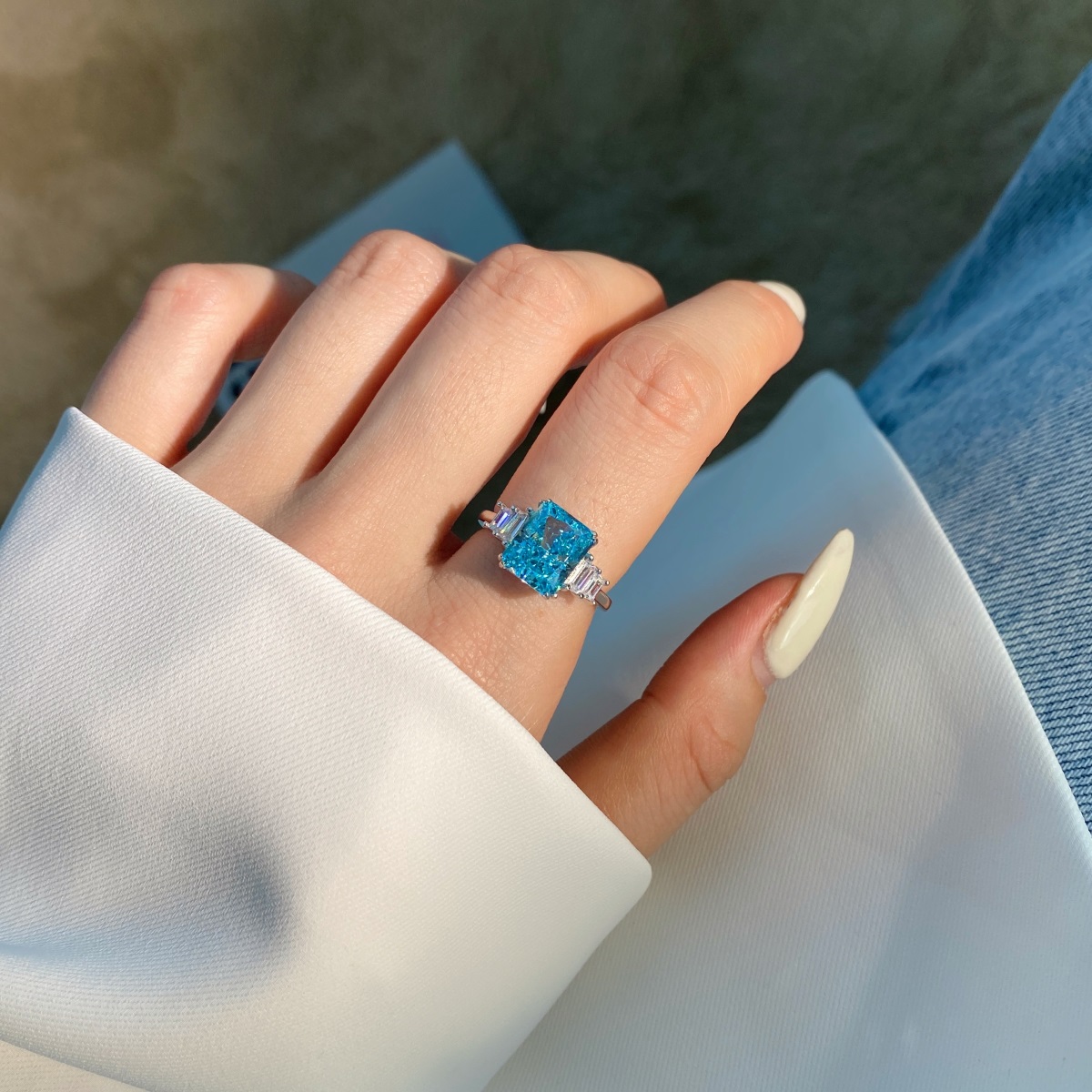 Unazë Argjendi 925 me cilesi të garnatuar në matrial.Kjo unazë ka një rreth të thjesht mirpo guret e saj e bëjnë dukjen me të vecant me një guri blu shumë vezullues guri i cilesis të fundit dhe një shkelqim kristali. Guri blue krah saj ka edhe 6 gurë të formes Bagged e cila e sjell ketë unaze edhe më të vecant.