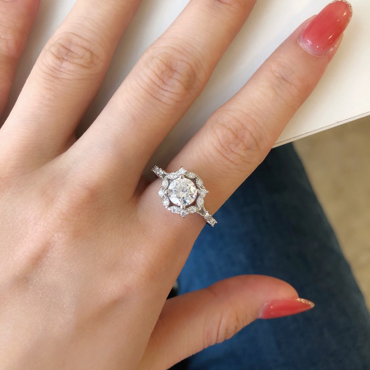 Unaze Argjendi 925 matriali i së cilës është i garantuar i punuar me gurin kryesor ne formë rrethi ku krah saj është bashkangjiturë gur të vegjel të cilet e bëjnë më të vecant unazen. Të gjithë guret jane të mbrojtur nga dhembët e vegjel qe vendosen për sigurin e gurit.