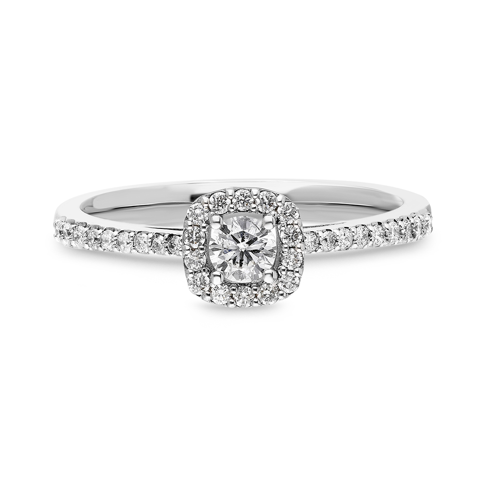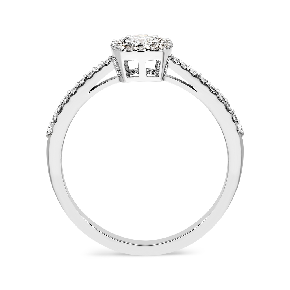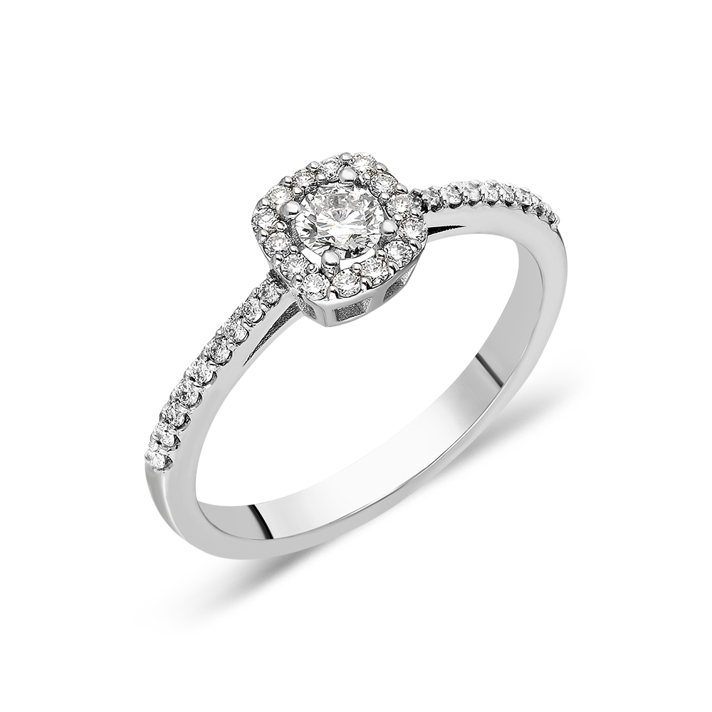 Unazë Ari i bardhë 14Karat, kjo unazë e punuar me gurë diamanti e bënë më unike këtë unazë. Unaza ka një shkelqim tejet unike dhe do jetë dhurata më e bukur qe mund të bëni ndonjeherë. Unaza në pjesën kryesore ka 1 guri kryesorë të cilësisë 0.17Karat, i cili është i siguruar nga 4 mbajtësë të cilët e sigurojnë gurin. Unaza po ashtu ka gurë të vegjel rreth 32 gurë diamanti të cilët total kanë 0.18Karat pra totali i kësaj unazës është 0.35Karat. Unaza është mjaftë model unikë dhe i vecantë.