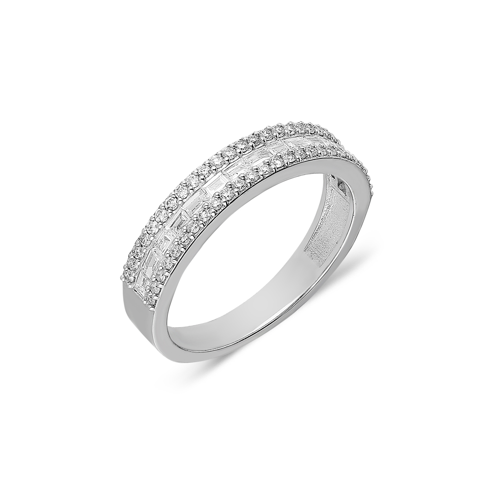 Unazë Ari i bardhë 14Karat, kjo unazë e punuar me gurë diamanti e bënë më unike këtë unazë. Unaza ka një shkelqim tejet unike dhe do jetë dhurata më e bukur qe mund të bëni ndonjeherë. Unaza në përbërjen e saj ka 13 gurë të llojit bagged të vendosur në formën horizontale të unazës, ndersa përreth gurëve bagged kjo unazë kufizohet nga 52 gurë të diamantit ku unaza ka një shkelqim magjik. Unaza Diamantit në total ka 0.53Karat.
